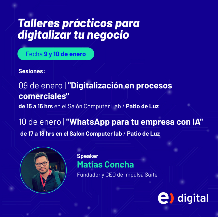 En IMPULSA Suite, nos emociona anunciar nuestra participación en uno de los eventos más importantes del año sobre digitalización y tecnología empresarial, junto a nuestro partner Entel Digital. Este evento representa una oportunidad para las empresas que buscan transformar sus procesos comerciales y adaptarse a un mundo cada vez más conectado.